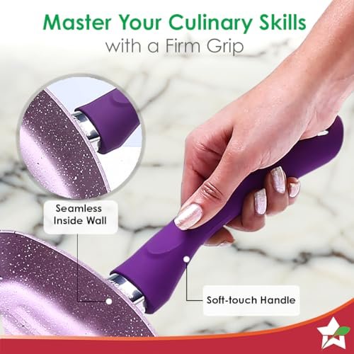 • EASY TO HANDLE – Soft-touch handles provide strong grip. Seamless inside wall, free from any unsightly rivets Say goodbye to food buildup and hello to a healthier and hygienic way of cooking and cleaning!