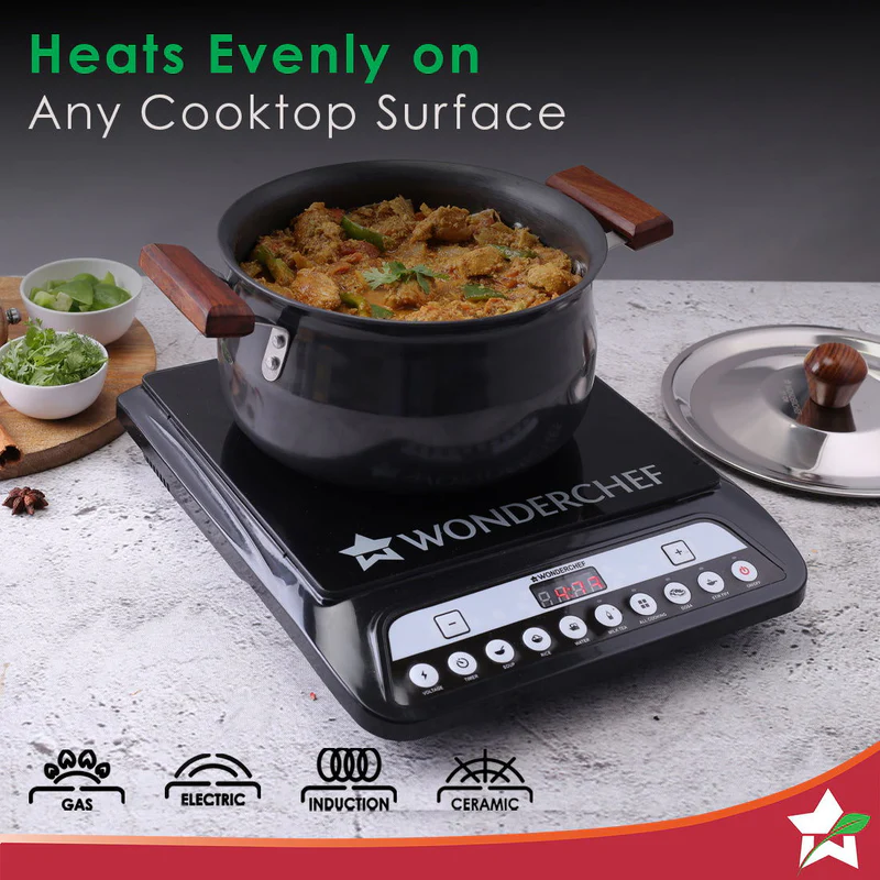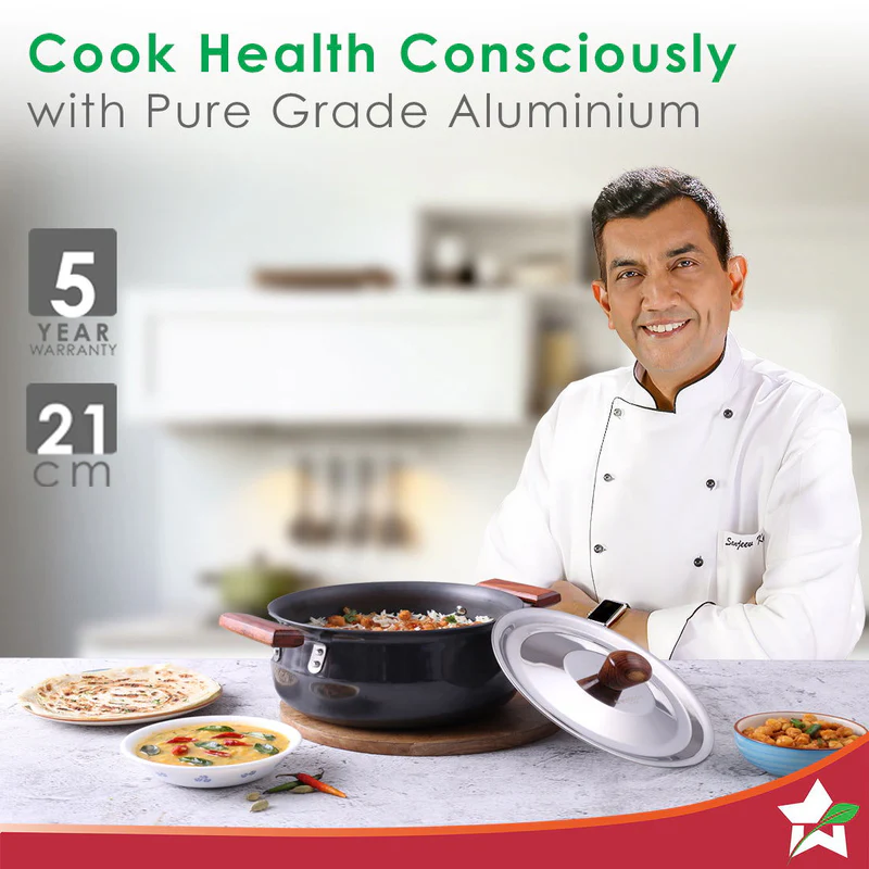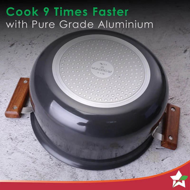Wonderchef Ebony Hard Anodized Non-Stick Biryani Handi with Lid – 5L | Black, 1 Piece