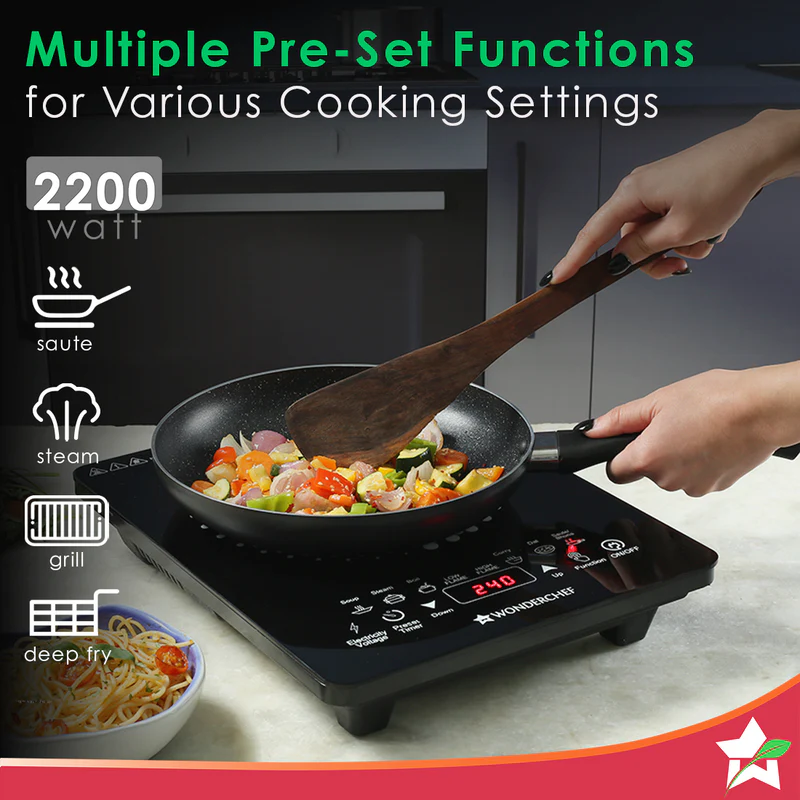 • STYLISH DESIGN: Experience the ultimate convenience of cooking at home with the Wonderchef Swift Induction Cooktop. Designed to make your cooking process faster and more efficient, this cooktop offers high heating efficiency that allows you to cook your meals almost twice as fast as with a gas cooktop. By saving on fuel costs, you can enjoy rapid cooking without compromising on taste and quality.