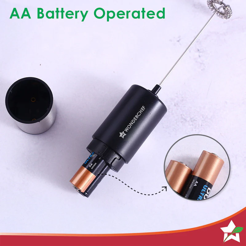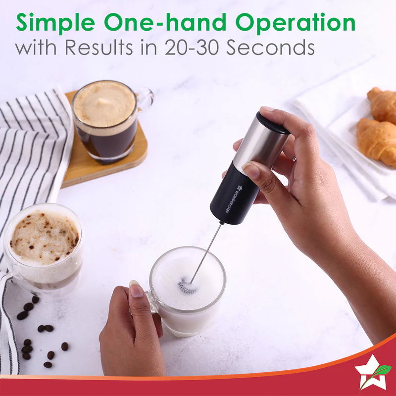 Wonderchef Regalia 6W Milk Frother for Coffee – Handheld Battery-Operated for Coffee, Lattes, Lemonade, Hot Chocolates and Shakes – Black