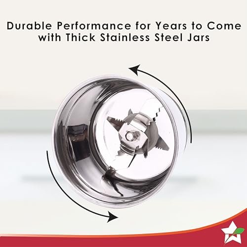 500-Watt Motor: The Acura Blender Pro Mixer Grinder is equipped with a robust 500-watt motor that ensures efficient grinding and blending of ingredients, making it suitable for various kitchen tasks High-Quality Stainless Steel Blades: The mixer grinder comes with sharp, high-quality stainless steel blades that can handle tough ingredients and provide smooth and consistent results. High-Grade Stainless Steel Jars with Flow Breakers: The set includes durable and corrosion-resistant stainless steel jars that offer ample capacity for different purposes. They are equipped with flow breakers, which enhance the grinding efficiency by creating a vortex inside the jar, ensuring even and thorough blending of ingredients. They are easy to clean and maintain, ensuring long-lasting performance. Unique Tower Shape: The mixer grinder features a distinctive tower-shaped design to give extra stability and strength Contamination Free: The jars come with a concealed bush under the blades, so your ingredients are always free of any contamination