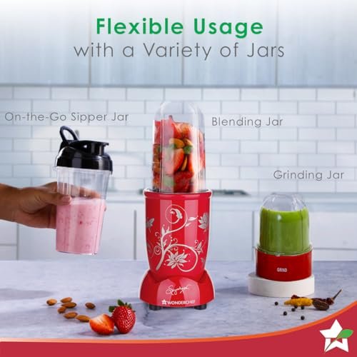 INDIA’S FINEST: Nutri-blend is India’s best-selling mixer-grinder thanks to its powerful motor, beautiful looks, unbreakable transparent jars, and incredible performance MIX: Grind Blend in just 30 seconds: – Make chutneys, healthy smoothies, and grind dry masalas & spices in just 30 seconds POWERFUL 100% FULL COPPER MOTOR: Grind the toughest chutneys and masalas with the 500 W, incredibly high speed of 22,000RPM copper motor – twice that of normal mixer-grinders SURGICAL-GRADE STAINLESS STEEL BLADES: Extract every ounce of immunity-enhancing antioxidants, pain-relieving Omega 3s, proteins, vitamins & minerals from your foods with the super sharp blades rotating at high speed TRANSPARENT & UNBREAKABLE JARS: Monitor the progress without opening the jars. Use the tall jar (500ml) with a 4-wing blade for mixing-blending and the short jar (300ml) with a 2-wing flat blade for grinding EASY OPERATION: Easy push & twist operation. Positive locking of the jars to avoid damages. Easy to clean, dishwasher safe. ALL-IN-ONE SYSTEM: Start with 2 jars, and add a chopper, food processor, juicer, and bigger jar anytime for your different needs