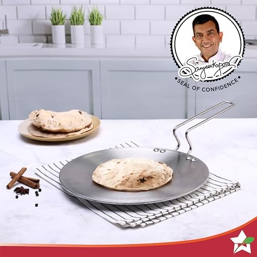 Wonderchef Nigella Tri-Ply 26 cm Roti Tawa | Non-Stick Tawa | 4mm Thickness | Induction Base | Compatible with All cooktops | Riveted Cool-Touch Handle | 10 Year Warranty, Stainless Steel, Silver