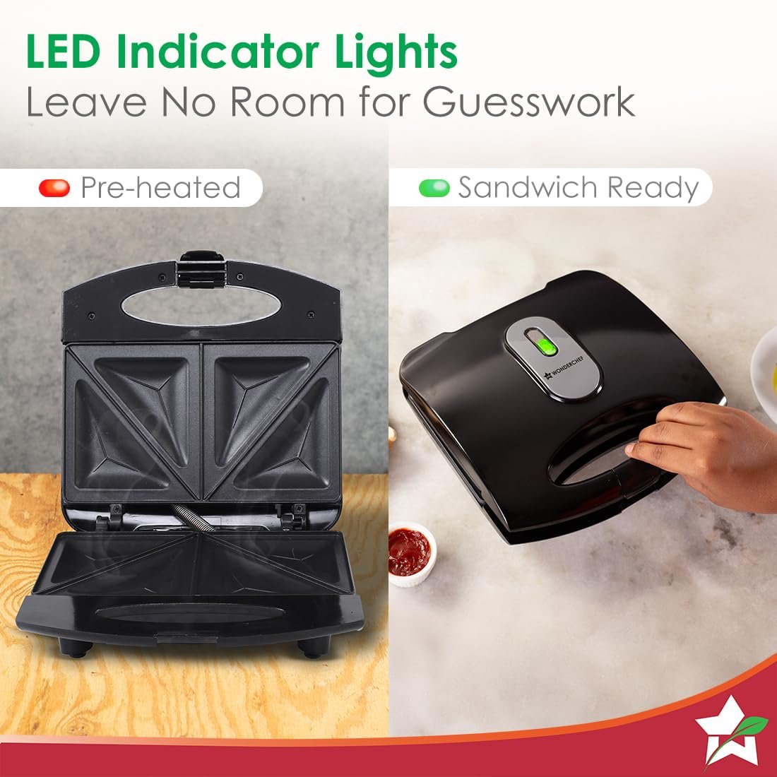 • Wonderchef Acura Plus Sandwich Maker for tasty and healthy sandwiches made easily at home. The non-stick coating of the plates for low-oil healthy cooking