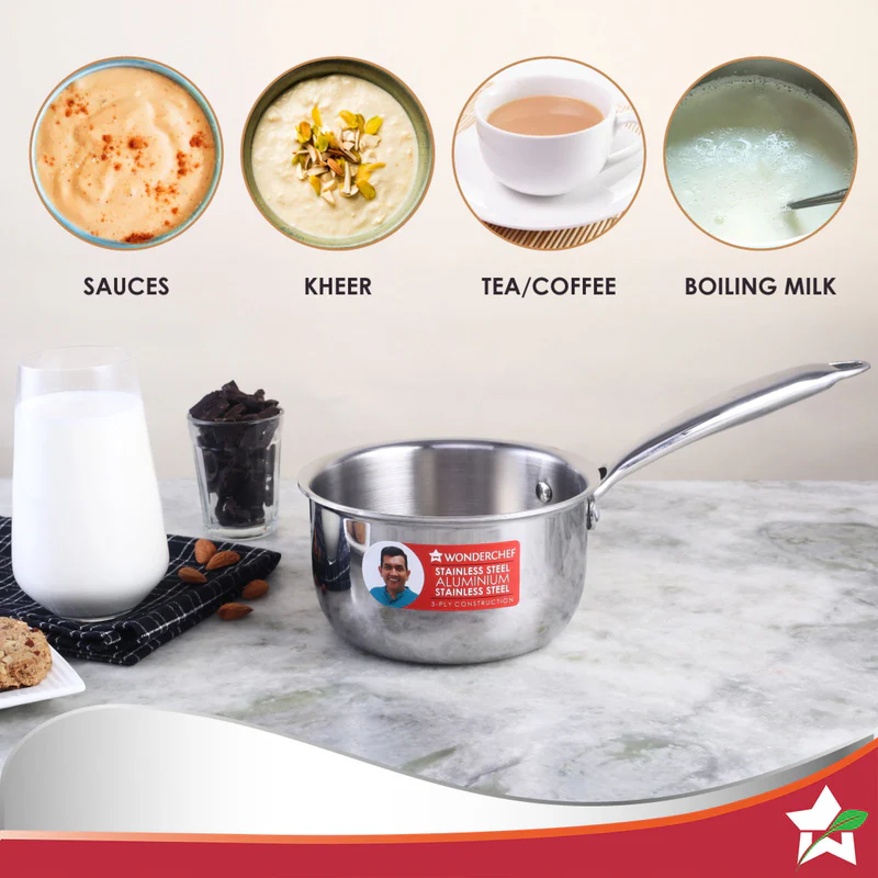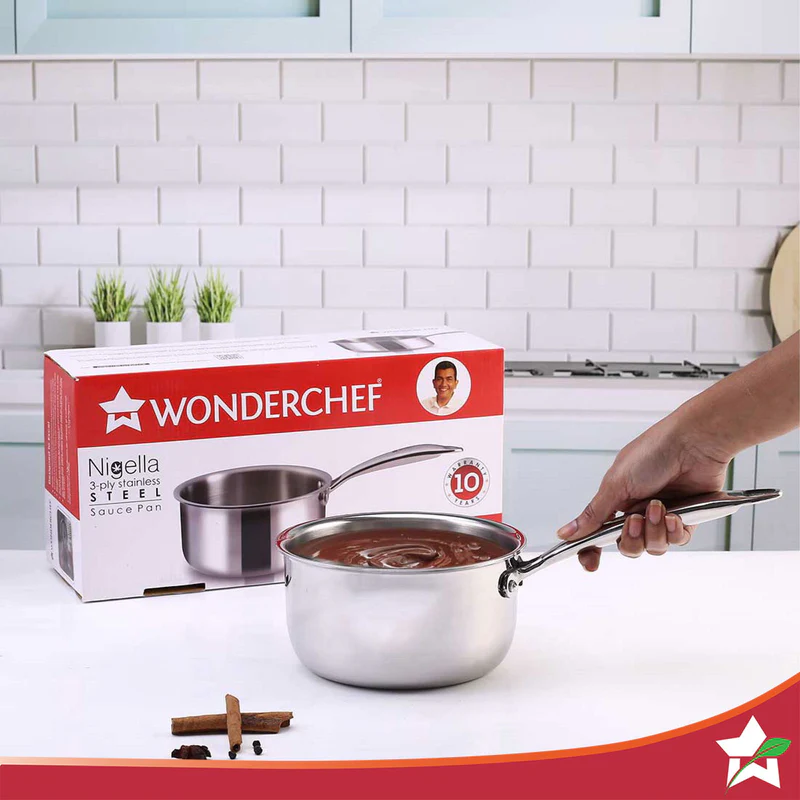 - Wonderchef Nigella Tri-Ply sauce pan offers you a splendid cooking experience. Ideal for boiling milk, water or to make tea and coffee. The steel will last for a lifetime, making Nigella range of stainless cookware ideal for both professionals and homechefs.