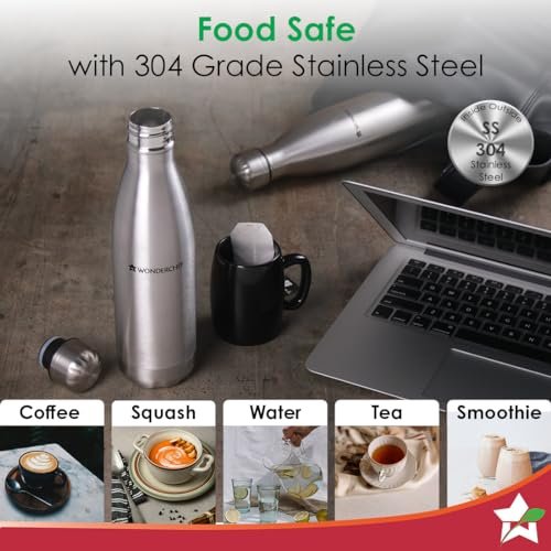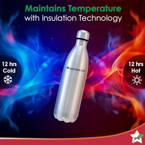 HYDRATION REDEFINED : Say yes to reusable, non-toxic, sustainable hydration for your family. Easy-to-hold design with non – plastic BPA free body and lids . Suitable during summers and winters, use for Hot & Cold water and beverages , at home or when you are out. For everyday use. Available in 3 sizes – 1000ml , 750ml , 500 ml. DOUBLE WALL INSULATION :Double wall vacuum insulation with copper plating locks the inside temperature for long. The outside temperature does not affect the beverage temperature inside the flask .The sweat free bottles exterior is easy to carry in bags and cars. HOURS HOT & COLD : Keeps your drink cold or warm for up to _ hours. For the coldest drink, simply add ice cubes to your insulated bottle. RELIABLE HIGH QUALITY : Made of the 304 food-grade, Rust proof , non-toxic stainless steel. The water inside retains a pure, clean taste with no BPA or chemical leaching. MULTI-UTILITY FLASK : Use everyday to hold water, shakes, beverages and many more .Use in school ,in offices, in the car,on long trips or simply at home. LEAK-PROOF ,ECO-FRIENDLY : The screw on lid does not spill even when it’s tipped upside or put in your bag. Reusable,recyclable stainless steel Aqua bot is safe for you and the environment PORTABLE : Light weight , easy to carry. Fits bags pockets , car cup holders